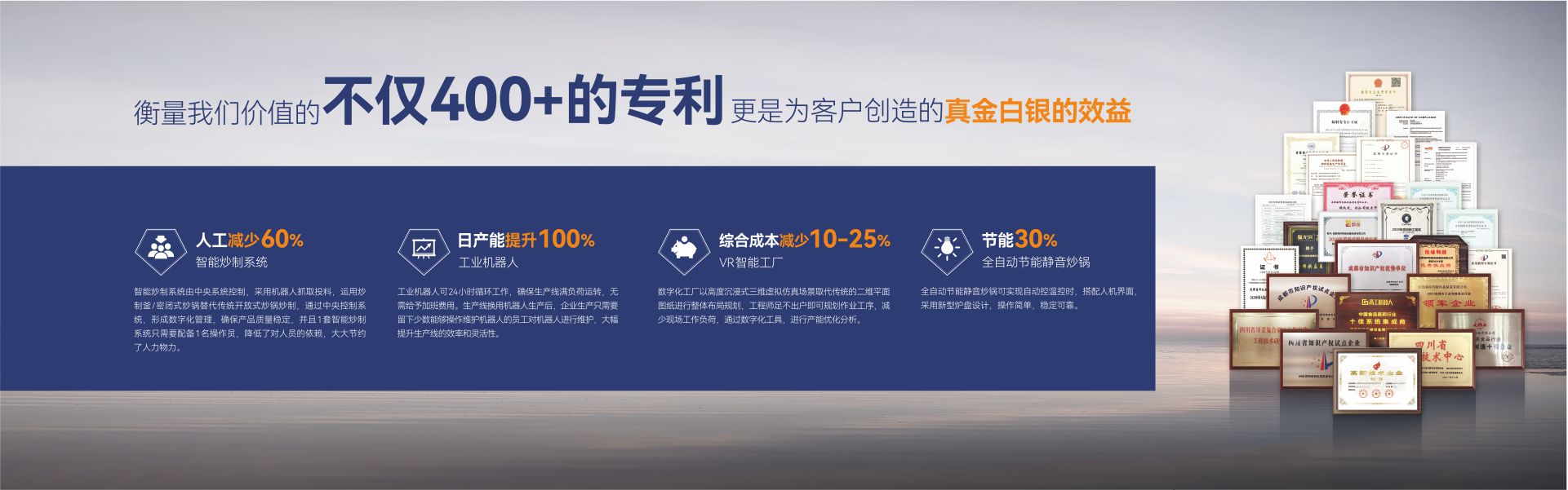 成都??茩C械設備制造有限公司(簡稱:成都??疲┦且患壹邪l、生產、銷售、服務為一體,專注為中國傳統食品行業提供自動化、智能化、數字化、智慧工廠整體解決方案的國家級高新技術企業。公司擁有標準化辦公樓及現代化生產車間約42000m2,具有較強的綜合研制、設計開發、生產能力,具備嚴格的質量管理體系和完善的售后服務體系。公司業務范圍覆蓋:復合調味品智能生產線、中式醬鹵肉制品智能生產線、醬腌菜智能生產線、智慧餐廚、央廚預制菜調理智能生產線,與海底撈、天味、九毛九、聚慧、楊國福、絕味、雙匯、新希望、無窮、烏江、吉香居、仲景、李記樂寶、Tyson、益海嘉里、開小灶、老鄉雞等眾多知名企業合作。截止目前,成都??埔呀浿Τ?000+企業順利投產5000余條生產線,為客戶創造年產值超1000億元!